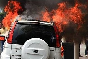 在这几分钟内,引擎盖上的油漆烧完了,里面的电瓶被烧毁,但是车中的物体没有什么损失。