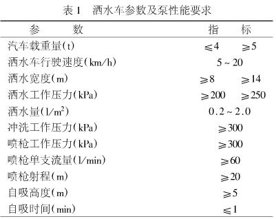 在我国行业标准QC/T29114《洒水车技术条件》中,对洒水车泵的性能作出了相应的规定,如下表1所示。